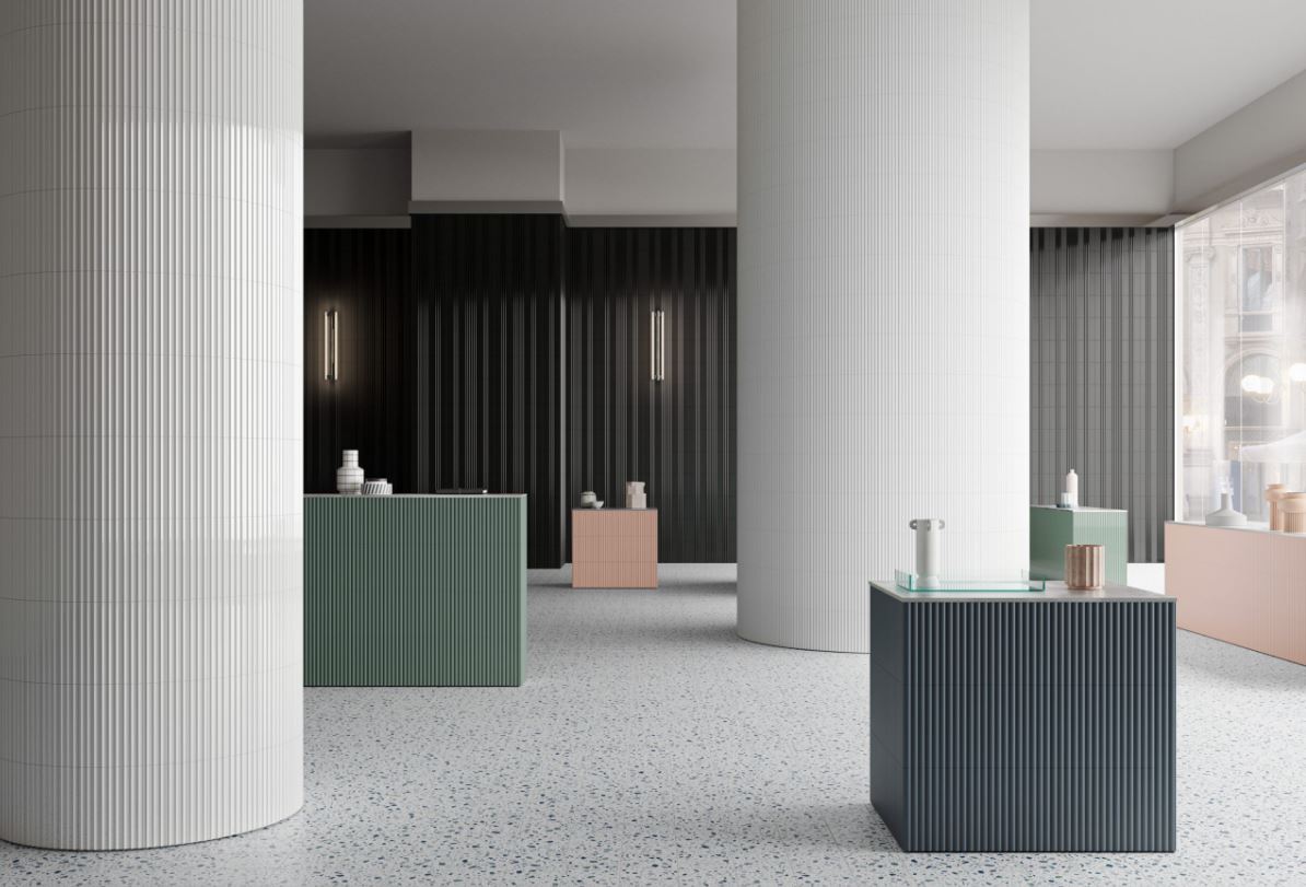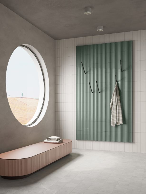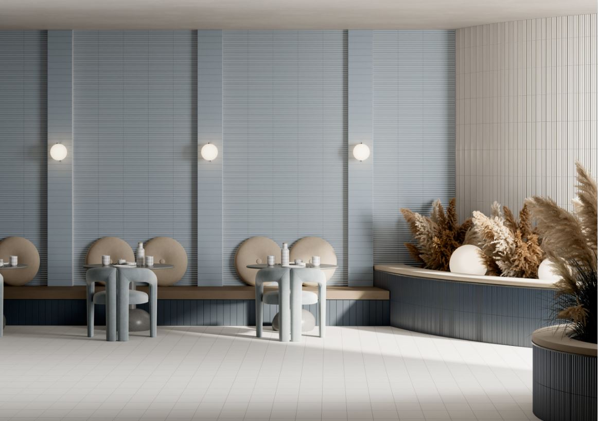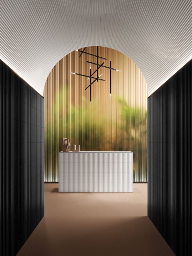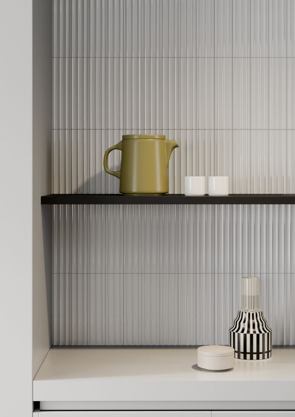 Marea is a new white enamel body ceramic collection in a 75x300mm format, available in 3 structures: a smooth base finish, a convex structure with a matt finish and a concave structure with a gloss finish.
