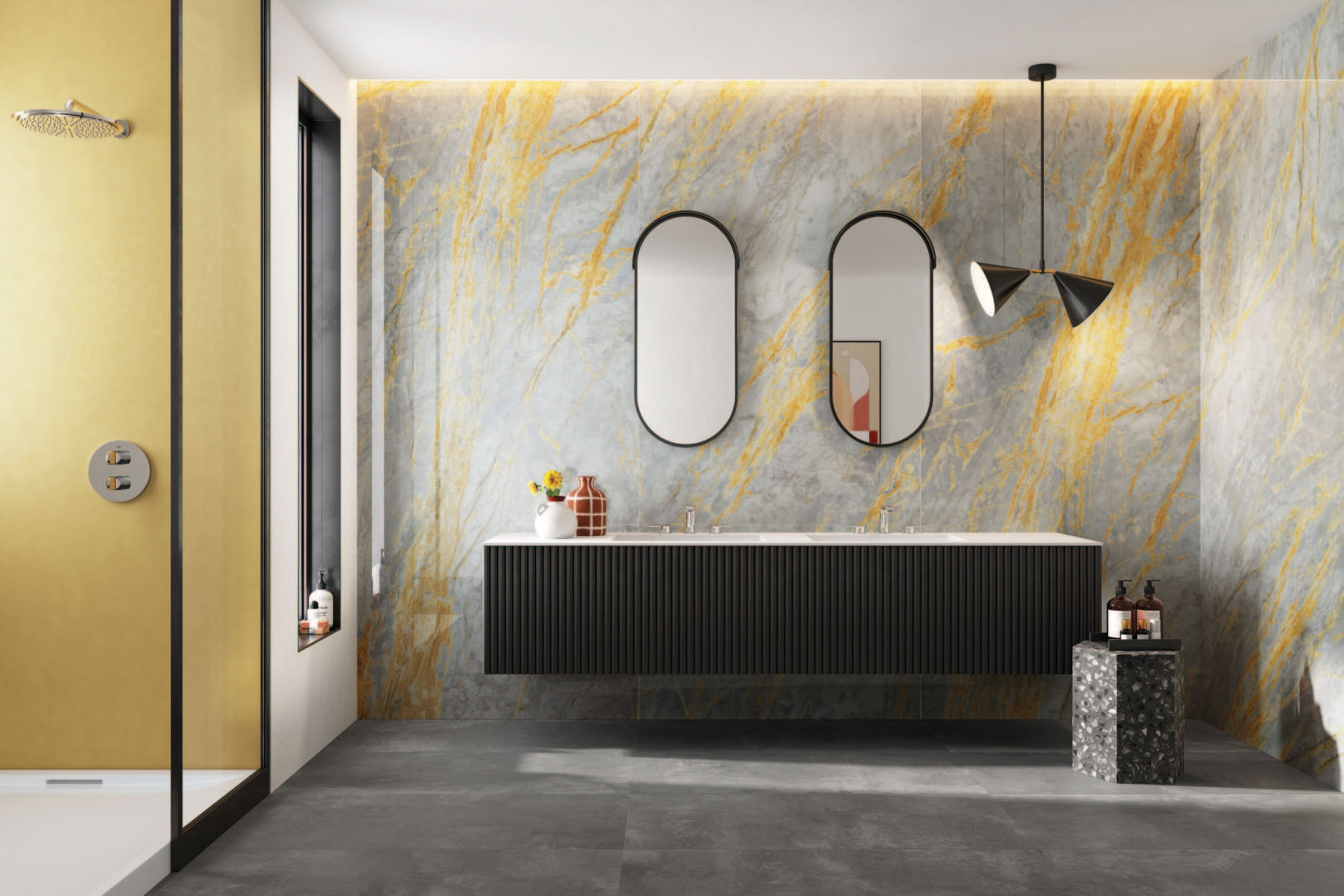 Sensi Signoria is a "colourful luxury experience" that, just like Renaissance art, cleverly combines a selection of polychromatic marbles, but in a completely new and contemporary way. The colour contrasts and the stylish matches are defined by a sophisticated colour palette as well as neat, geometric decorative patterns.