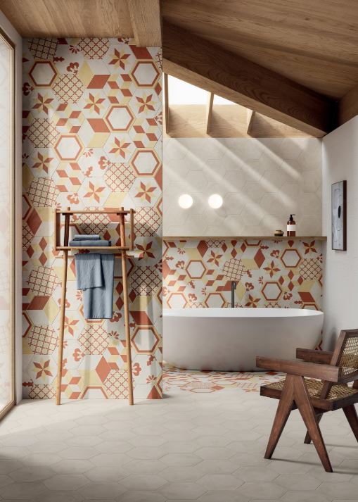 Faithful to the sizes, a classic 20x20 and the versatile 25x21.6 hexagon, but at the same time revolutionary in style. Terra.Art relies on a trendy colour palette that ranges from the elegant neutral hues of sand and white, to fresh, cool tones such as blue, sky blue and mint, as well as the enveloping, warm shades of cream and sunset.